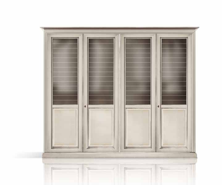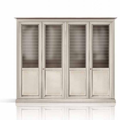 Wardrobe by Italian manufacturer Marchetti. Cabinet for small feet, the door is half-glazed. The frame is made of solid walnut. Color scheme in white. A style classic.