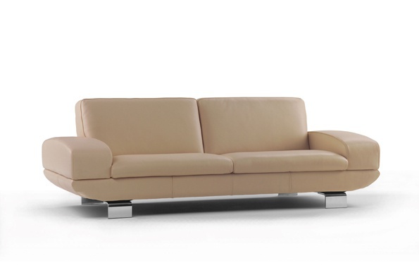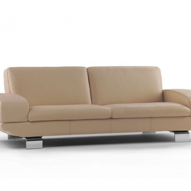 A double sofa from Italian producer Calia Italia. The model with rectangular backrest and wide armrests. Legs are made from chromed metal. Body completely covered with genuine leather. Available wide range of color options. Filler - polyurethane foam of different densities.