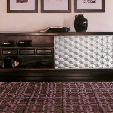The Fusion sideboard from Italian producer Luciano Zonta. Model with sliding doors. The frame is made from solid wood. Door coupe with a decorative ornament in the form of honeycomb, covered with silver foil. Made in a modern style.