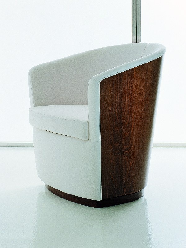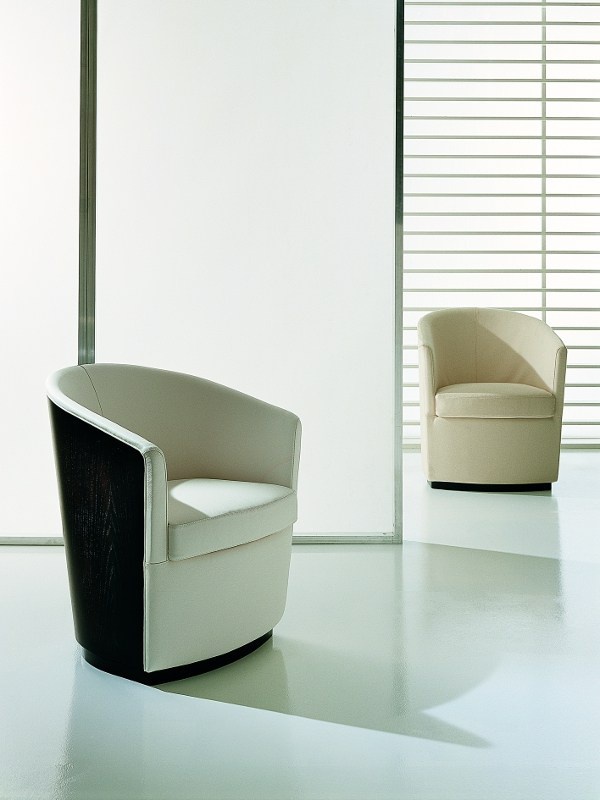 Allegra chair from the Italian manufacturer BODEMA. The chair is in natural leather or textile. This indicator is based on a frame of beech. Finish is also made of beech. Rotating, round chair a comfortable place to rest at home and in the office.