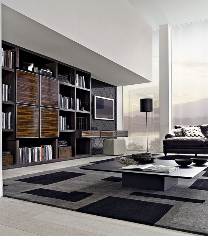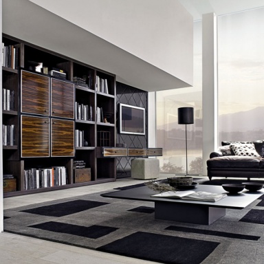 Modular shelving system Friendly for the living room from the Italian producer Luciano Zonta. The material of the frame - solid wood. Thanks to the modular system collection there are various options of specifications on customer's demand. The system is equipped with a set of open shelves for books, possible drawers, closed doors and with glass. The color of the furniture according to the manufacturer's catalogue. Possible finishes matte or high gloss lacquer finish with aging effect, can be used gold or silver foil if desired. The modern style of execution.