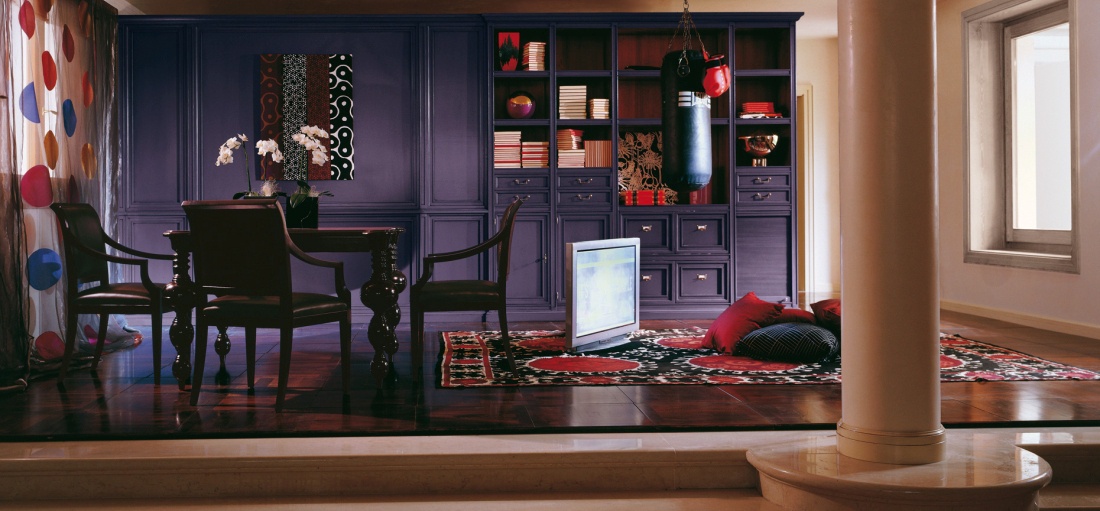 The "direttorio" style for the living room wall for the living room from the Italian producer Luciano Zonta. The system is equipped with wing lockers, drawers and open shelves. The material is solid wood of valuable breeds. Color in stock. The model is made in classic style.