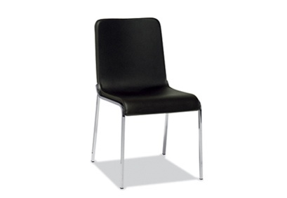 A chair from the Italian manufacturer Calligaris. Made in a modern style. The high legs of chromed metal. Seat and back upholstered in black leather. Different practicality and elegance. Perfectly fits in any interior.