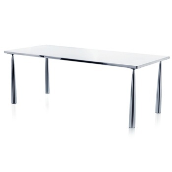 Pilastro dining table from the Italian manufacturer Magis. The legs are made of aluminum, top made of MDF, veneered with oak. The model is rectangular. The product is designed for dining room in modern style. Colors: white, steel.