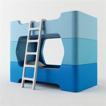 Crib Bunky from the Italian manufacturer Magis. The frame is made from polyethylene. The model is bunk. Can be used as a bed with one bed. A lovely choice for a nursery in a modern style. Colors: blue, light blue.