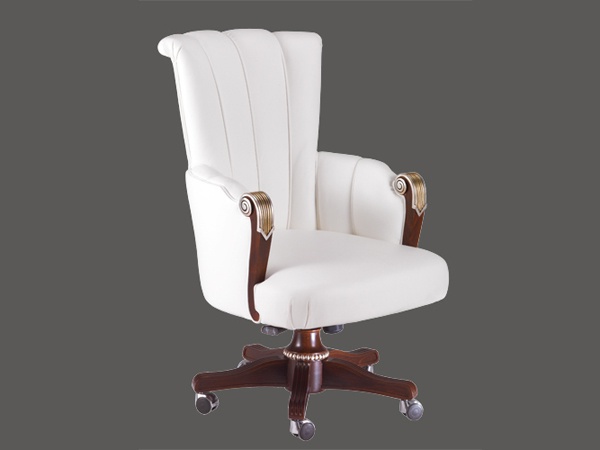 Headsets for the office from the Italian manufacturer Busnelli Adamo. The presented model bookcase, Desk and chairs. Frame made of wood, legs are decorated with decorative elements. Chair in white leather finish.