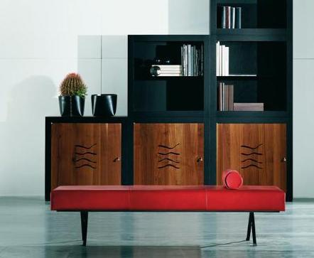 The couch Dormeuse in contemporary style, produced by the Italian factory Frighetto. The frame is metal. Model soft filler – polyurethane foam. Upholstery leather, colored with natural dyes and decorated with beads. The model is presented in red. Available other color options. The daybed is padded roller.