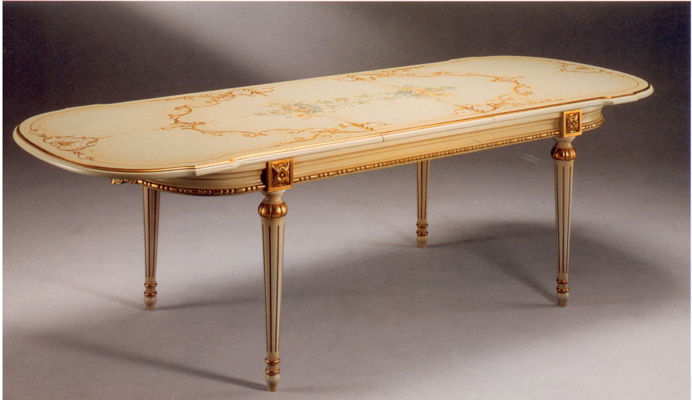 Oval folding table from the Italian manufacturer Meroni Francesco. The frame is made from solid wood. Model with hand painting and gilding. A chic choice for the dining room in a classic style. Colors: natural wood color, ivory.