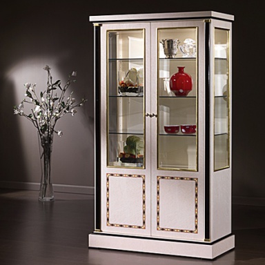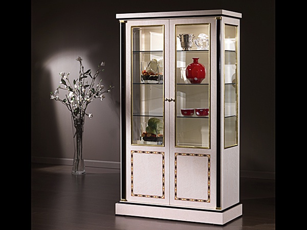 Showcase from Italian manufacturer Busnelli Adamo. The model is made of wood with glass doors. Color white Windows with black accents. A style classic.