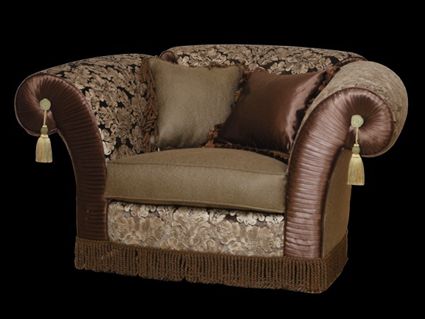 Chair in a classic style from the Italian manufacturer Busnelli Adamo. Frame made of natural wood, fully upholstered with textile in gray with brown tones. Armrests round soft. The model is made in modern style.