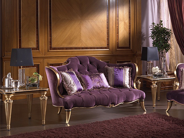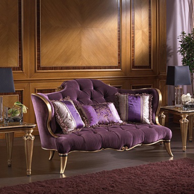 Chair in a classic style from the Italian manufacturer Busnelli Adamo. Exclusive furniture will add a touch of solemnity and uniqueness. The frame is natural wood, silver legs are figured. The model of upholstered fabrics in a purple tone.