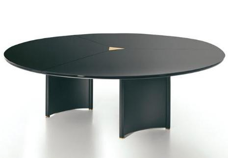 Round dining table Pitagora from the Italian manufacturer Frighetto. The frame is made from aluminium, painted black. The table top is decorated with a pattern of a triangle. The table is designed in modern style.