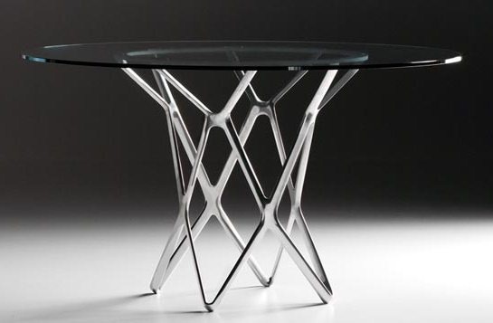 Tori dining table from Italian manufacturer Frighetto. Countertop round glass, tinted glass, 15 mm thick, decorative aluminum leg. The model is made in modern style.