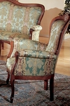 3138 armchair from Italian manufacturer Modenese Gastone. The frame is made from solid wood, upholstery - cloth from a range of campaigns. The decorations carved. Model with a high back. The perfect choice for a living room in classic style. Colours in stock.