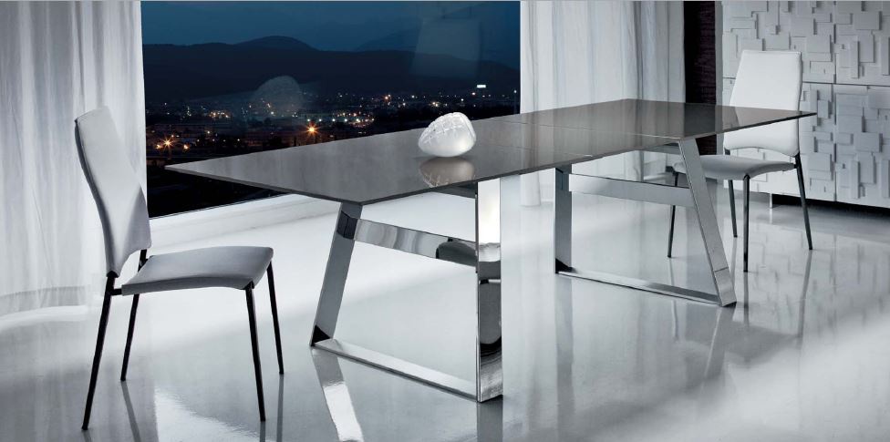 Santiago dining table from Italian manufacturer Cattelan italia. Model with metal legs. Finish offered a choice from the collection of the company. The table top is rectangular. Material - transparent or white glass. The table is manufactured in contemporary style.