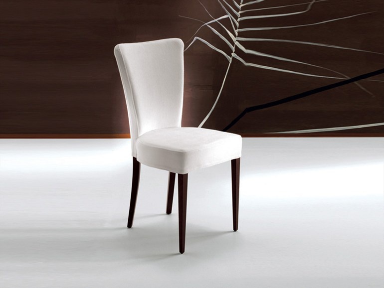 The Susanna chair from the Italian manufacturer Cattelan Italia. The high legs are made of solid wood. The surface is treated with lacquer. Seat and high backrest upholstered in textiles. The color of this model is white. The model is made in a modern style.
