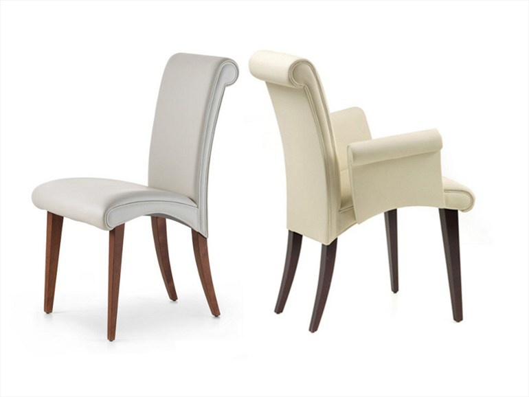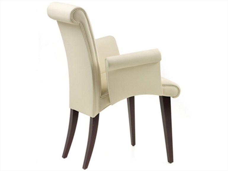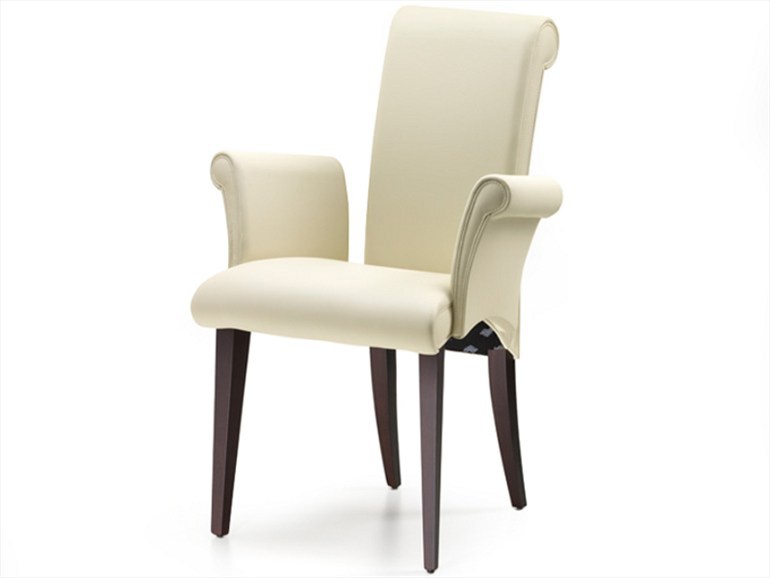 Chair with armrests Lulu from Italian manufacturer Cattelan Italia. Model with a high back and soft seat. The frame can be covered with fabrics or leather from the collection of the factory. Legs are made of solid wood. The surface is treated with lacquer.