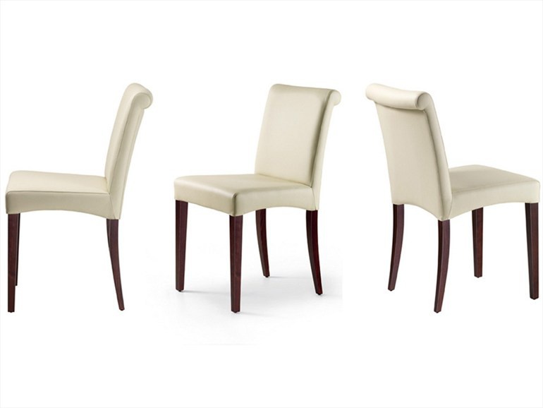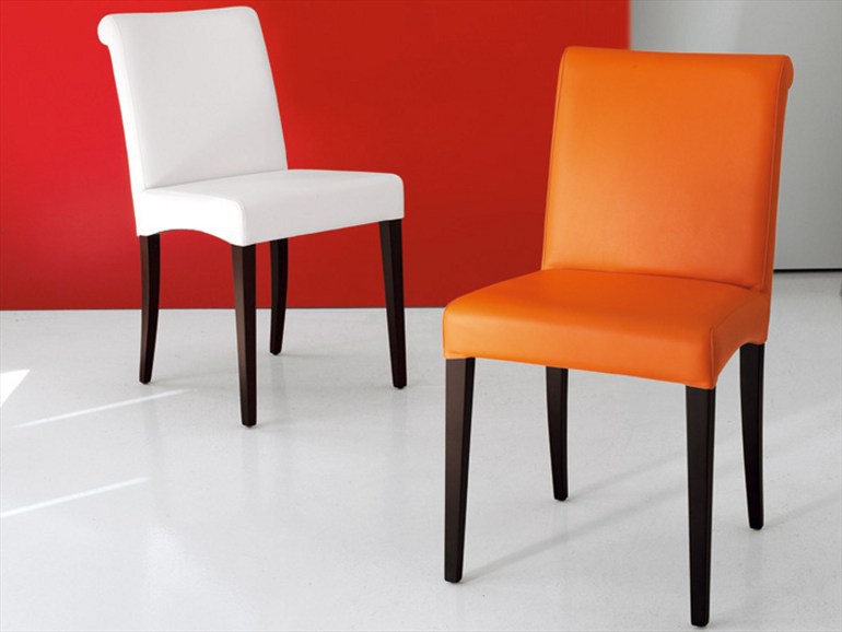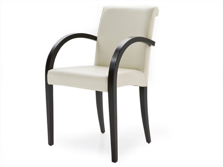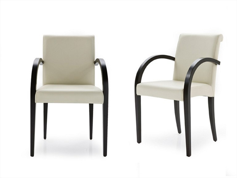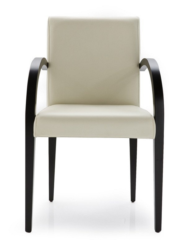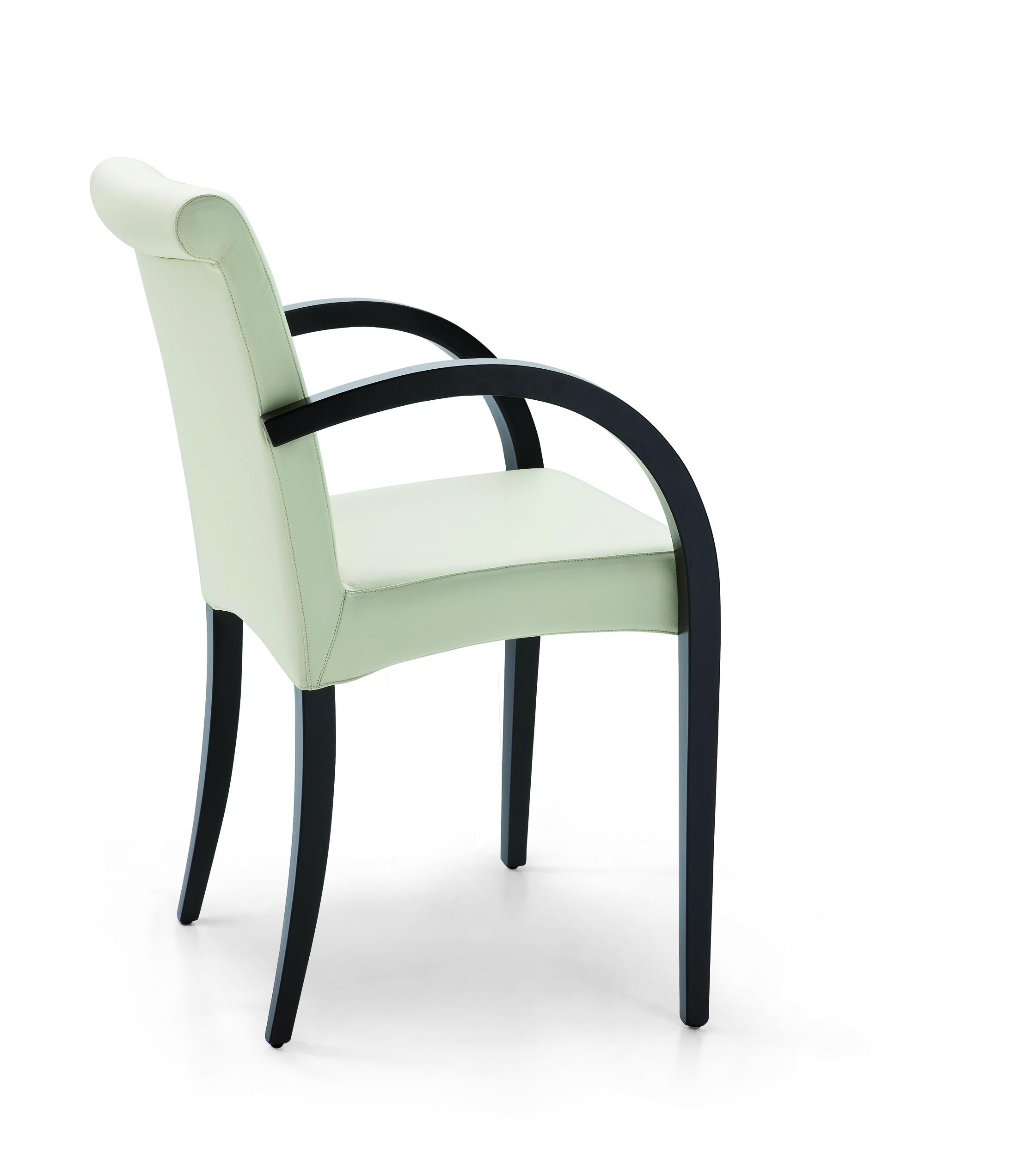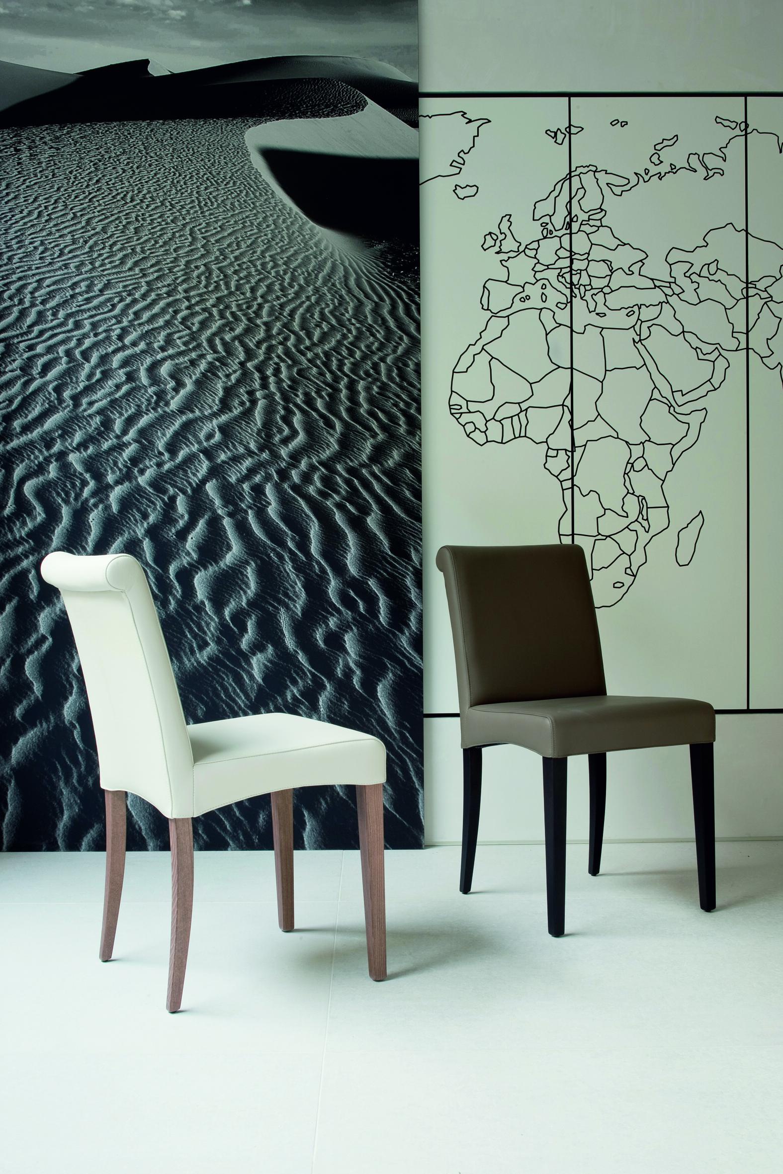 Chair Linda from Italian manufacturer Cattelan Italia. Model on high legs. Material - solid wood. The surface is treated with lacquer. Seat and back upholstered in fabrics or leather. There are two versions with or without armrests.