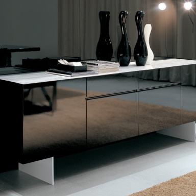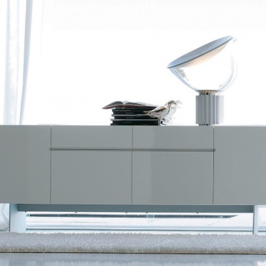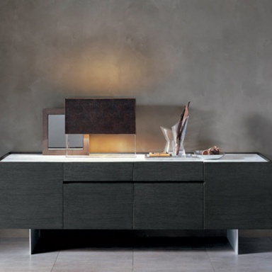 Kubit stand from Italian manufacturer Alivar. The legs are made from aluminium, the frame is solid oak, countertop - stone. Model with drawers and hinged doors. A great choice for modern interiors. Colours in stock.