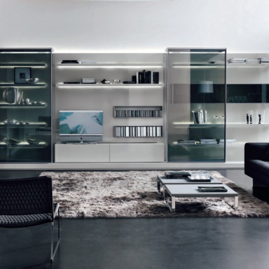 Model storage system Off-Shore System from the Italian manufacturer Alivar. Windows and doors are made of glass, frame is MDF. Module for books/TV or heavy things. Perfect choice for modern interiors. Colours in stock.