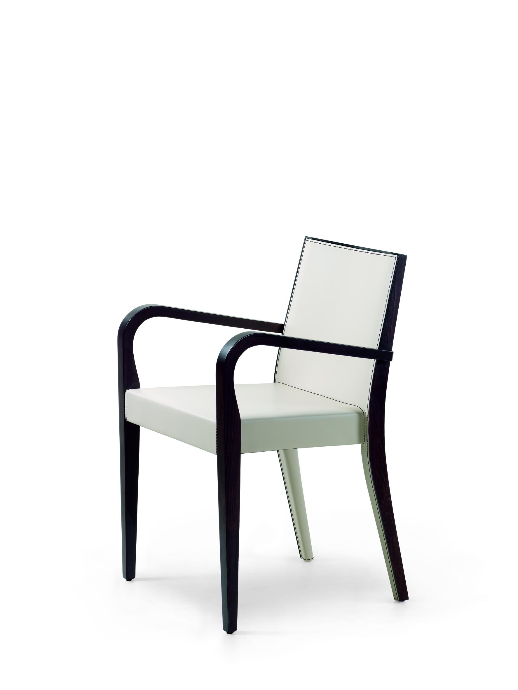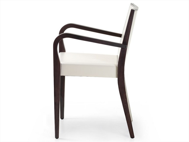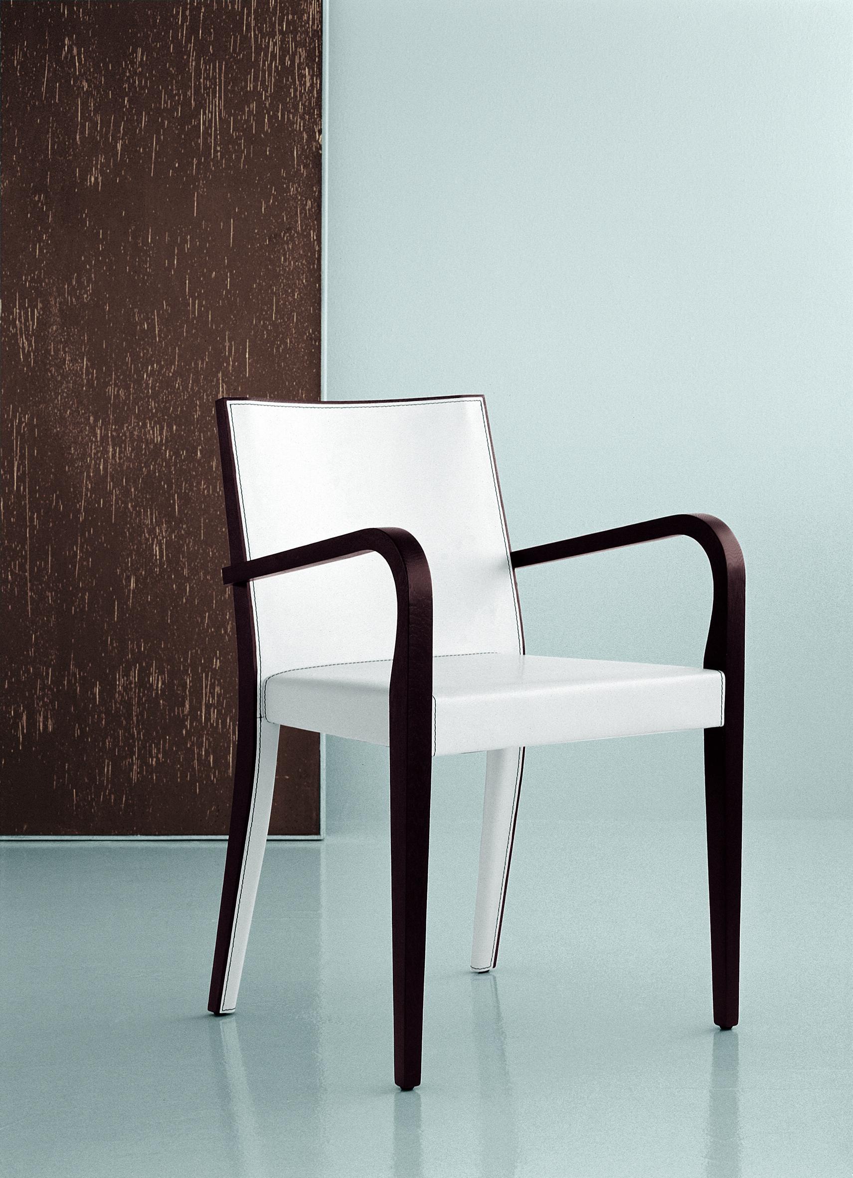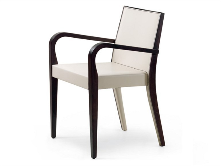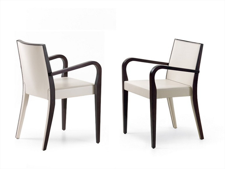 The Athena chair from the Italian manufacturer Cattelan Italia. Model with a square backrest and armrests. Material - solid wood. The surface is treated with lacquer. Leather upholstery to choose from a collection company. The chair is made in a modern style.