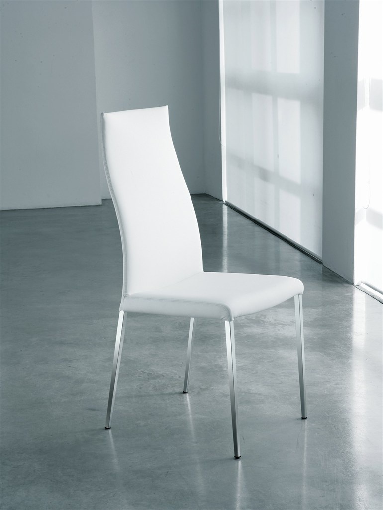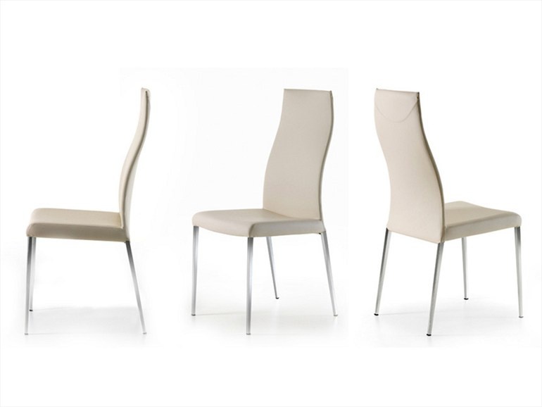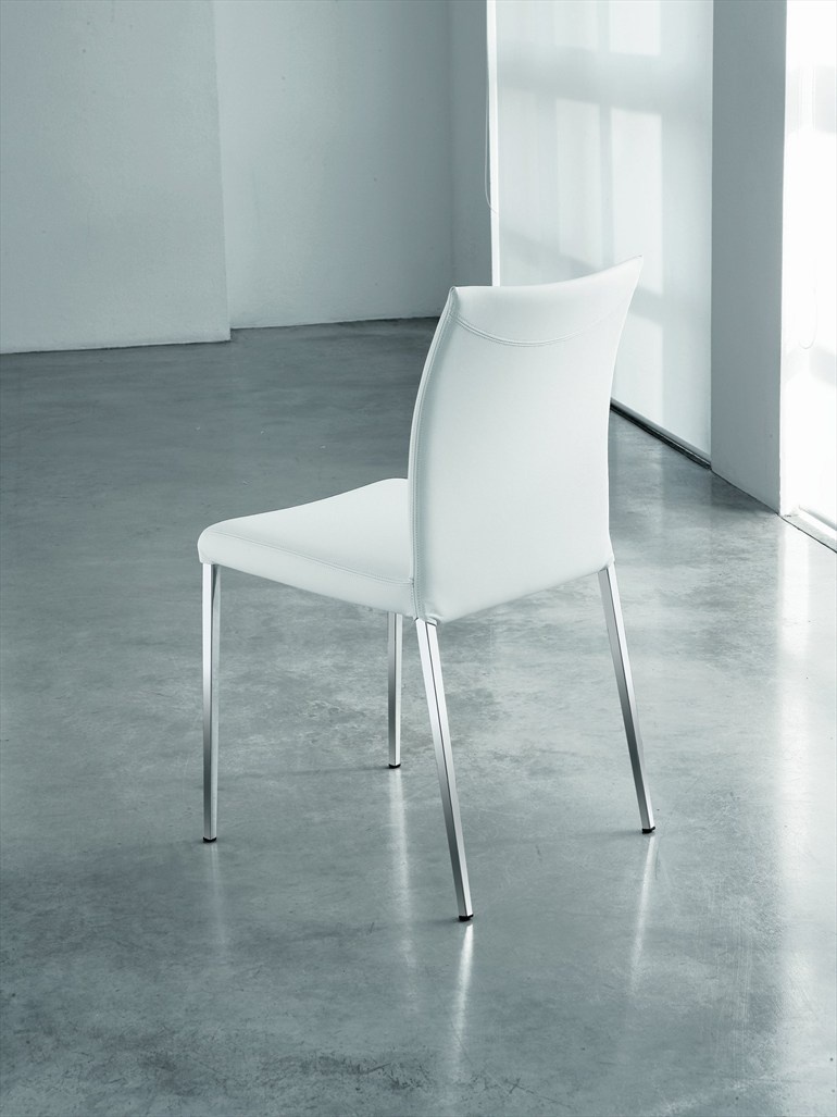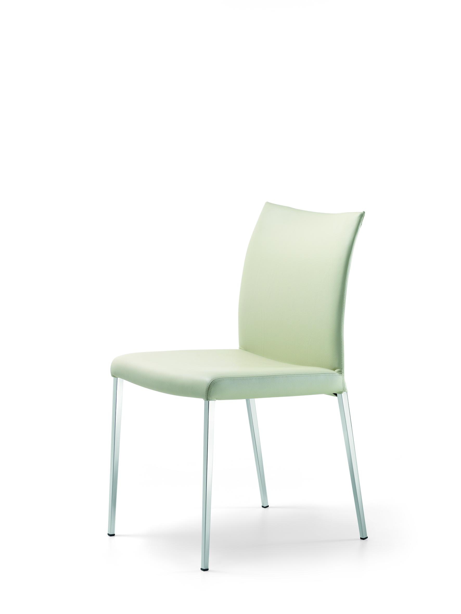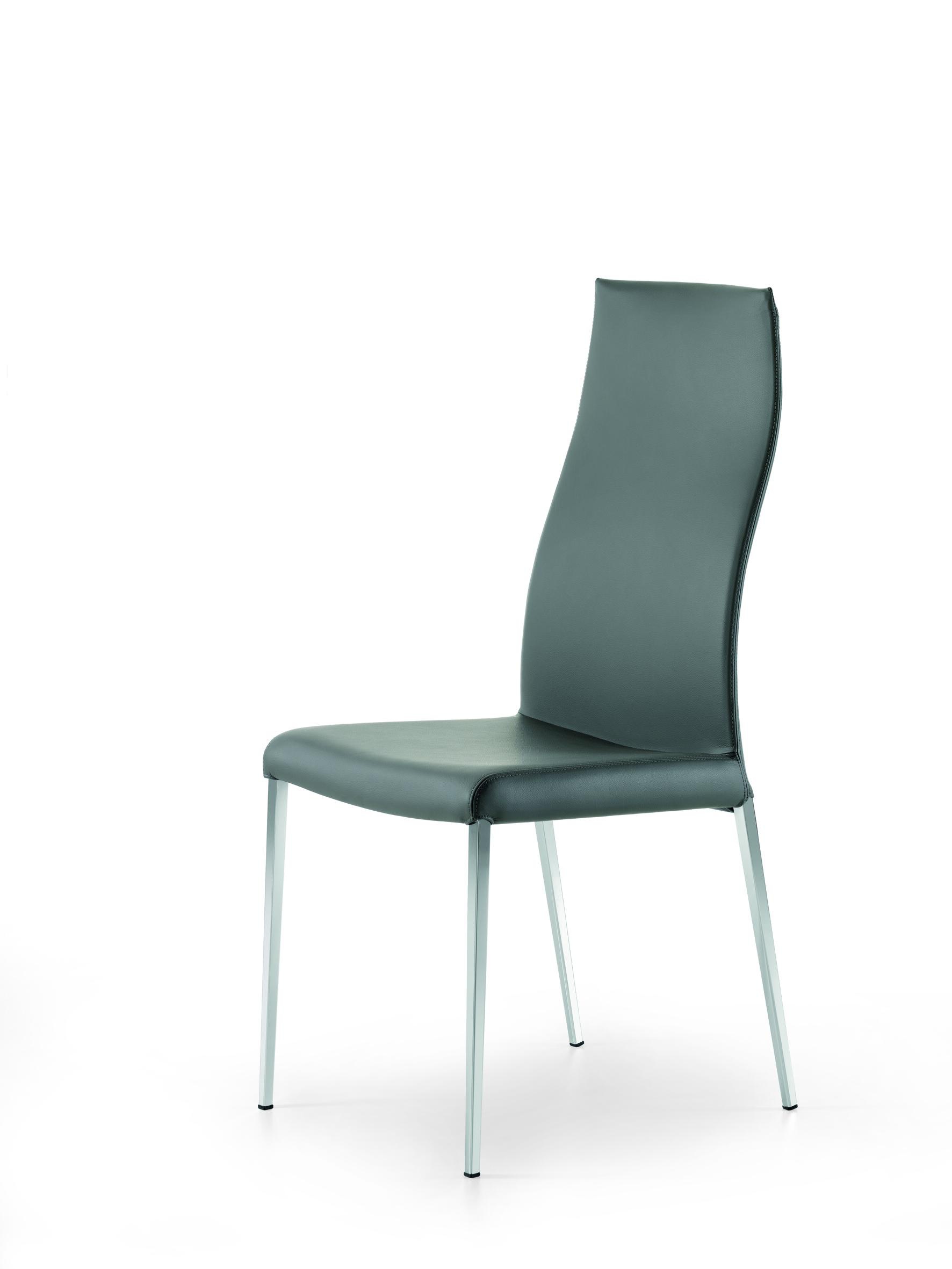 Anna chair from the Italian manufacturer Cattelan Italia. The frame is hidden. The high legs are made from chromed metal. Seat and back upholstered in leather/textile. Color option to choose from a collection factory. The model is made in a modern style.