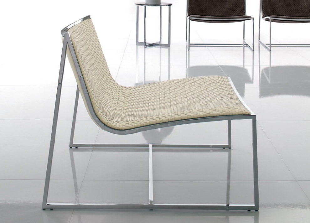 The Samoa armchair from Italian manufacturer Alivar. The frame is made from chromed/painted steel, filler - foam, upholstery woven - leather or leatherette. The model is designed for modern interiors. Colours in stock.