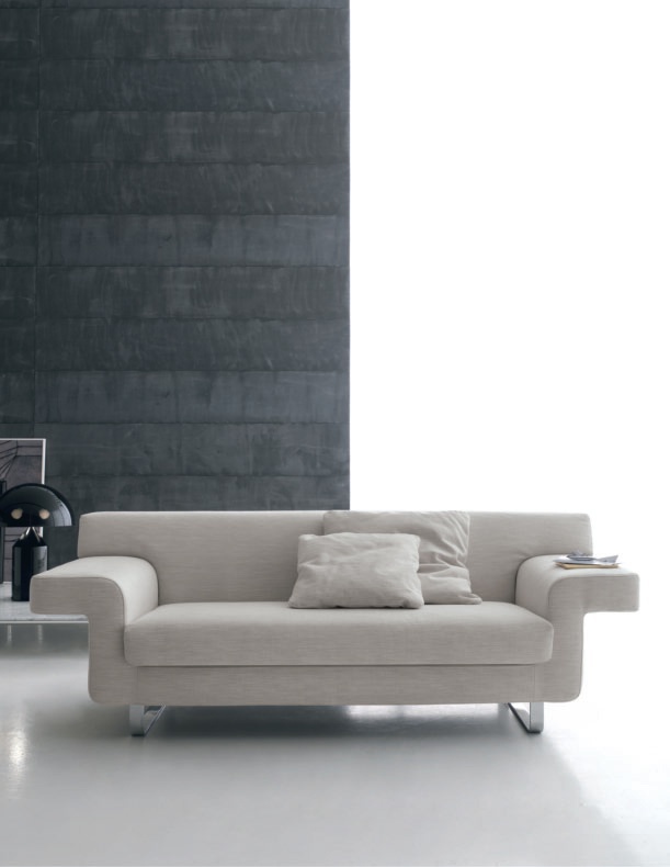 Sbang three seater sofa from Italian manufacturer Alivar. The frame is made of painted steel, filler - foam, upholstery - leather or textiles from a range of campaigns. The model is designed for living room in modern style. Colours in stock.