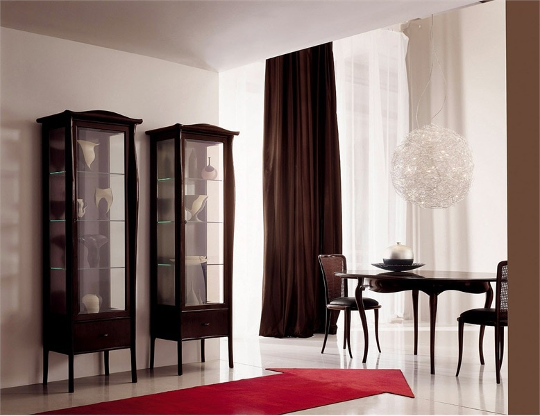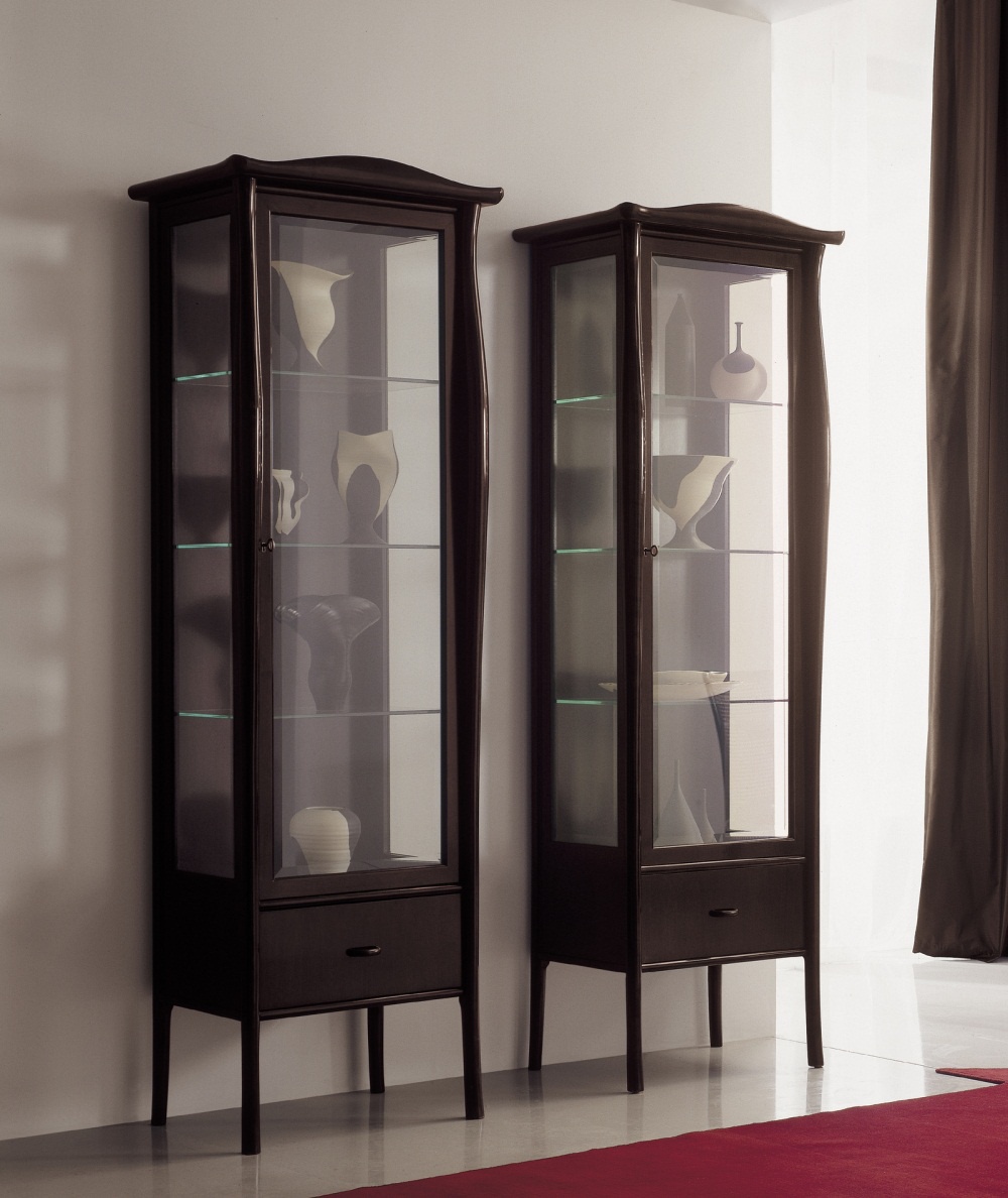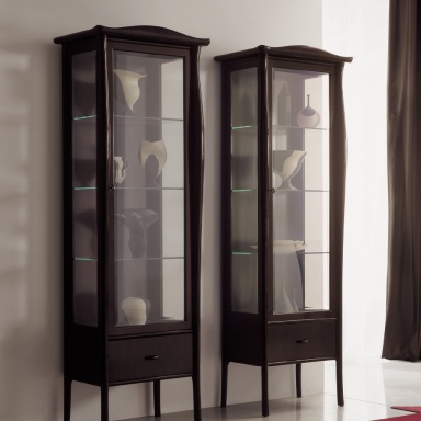 Showcase Annibale Colombo from the Italian manufacturer Annibale Colombo. The body is made from solid cherry, door and shelves - glass. Model with drawer. Perfect choice for modern interiors. Colors: transparent, natural wood color, brown.
