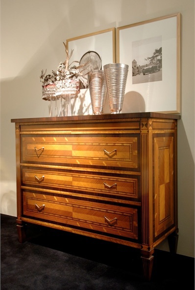 Chest Annibale Colombo from the Italian manufacturer Annibale Colombo. The body is made from solid cherry. Handles - metal. The model is decorated with marquetry. A pretty choice for interiors in classical style. Colors: natural wood color, brown.