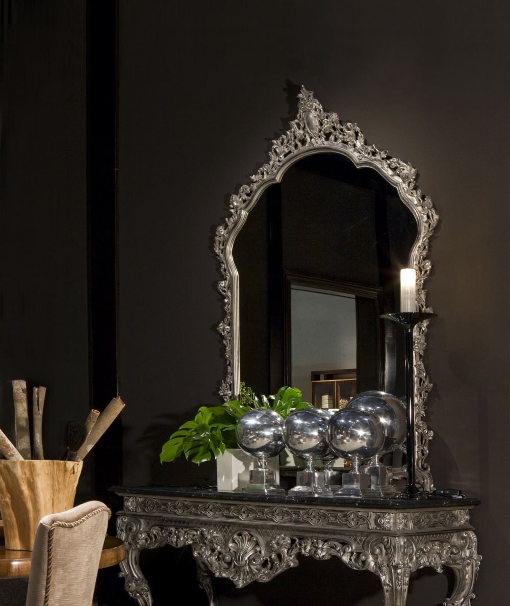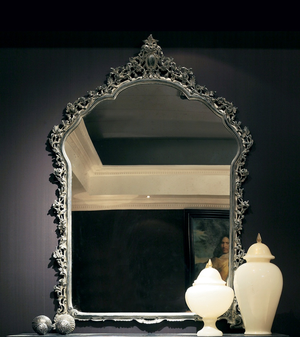 Wall mirror from the Italian manufacturer Annibale Colombo. The frame is made of solid wood in the finishing varnish from the range of the campaign. Finish - gold leaf or silver. The model is decorated with carved handmade decor. A perfect choice for interior decoration in a classic style.