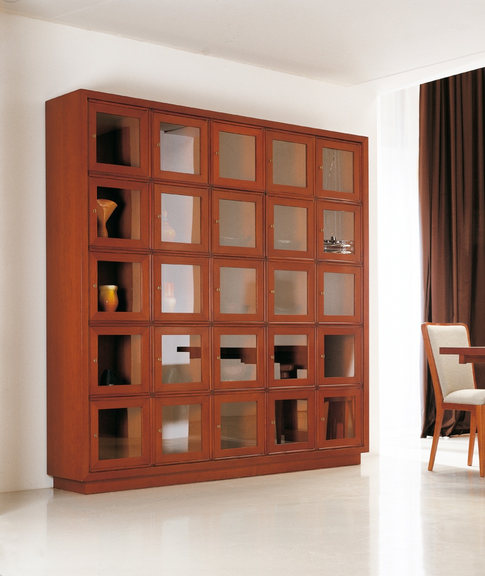 Bookcase from Annibale Colombo Italian manufacturer Annibale Colombo. The frame is made from solid cherry. Model with hinged doors and open shelves. A great choice for interior design in art Deco style. Colours in stock.