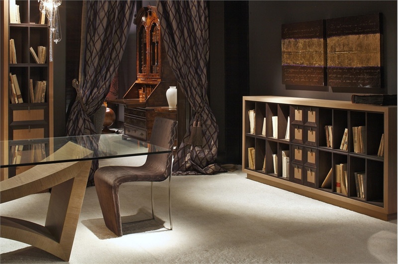 The modular system by Italian manufacturer Annibale Colombo. The frame is made from solid cherry. The module with drawers and open shelves. A great choice for modern interiors. Colors: natural wood color, brown.