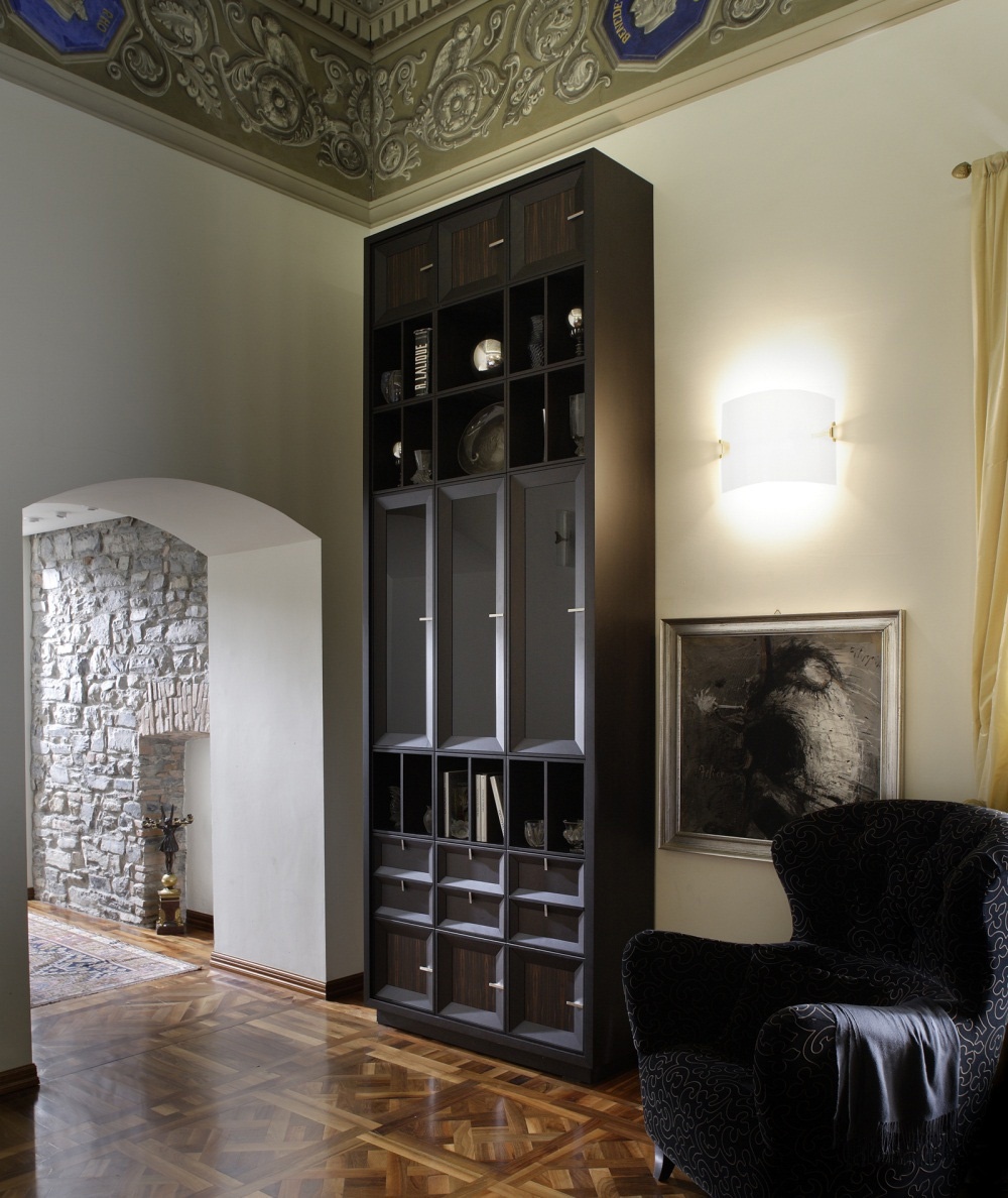 Bookcase about Annibale Colombo Italian manufacturer Annibale Colombo. The frame is made from solid cherry. Model with hinged doors and open shelves. A great choice for modern interiors. Colors: natural wood color, brown.