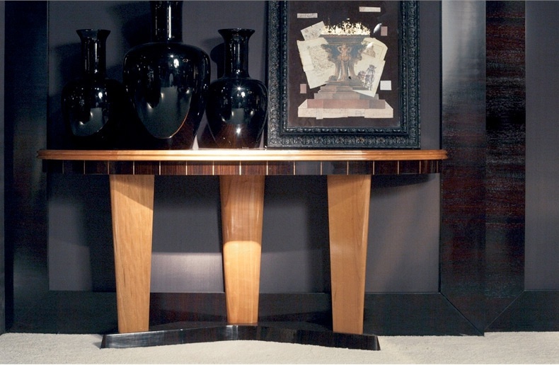 Console Annibale Colombo from the Italian manufacturer Annibale Colombo. The body is made from solid cherry/ebony Makassar. The model is designed for the living room in art Deco style. Colors: natural wood color, brown, black.