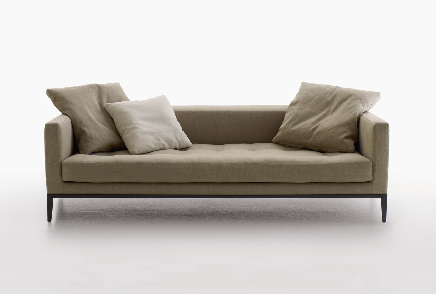 Three seater sofa Simpliciter from the Italian manufacturer B&B Italia. The frame is made from aluminium, upholstered in leather or textiles from a range of companies. The design of complementary decorative pillows. A great choice for living room in modern style. Colours in stock.
