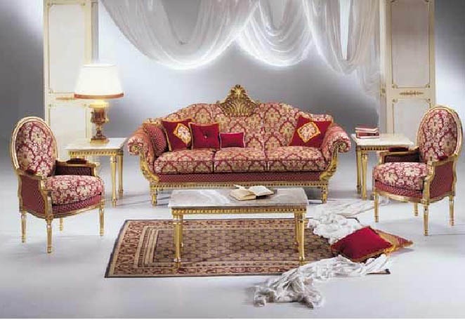 Tampa sofa set from the Italian manufacturer Caspani Tino. Consists of three seater sofa, two armchairs and a coffee table. Material - solid wood. Finish option to choose from a collection company. Cushions filled with polyurethane foam and down. Rectangular top is made of marble. Set made in a classic style.