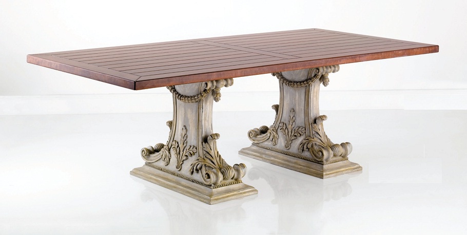 Dining table from the Italian manufacturer Chelini. Legs are figured the forms. Countertop rectangular. Material - solid wood. The surface is treated with lacquer. Color option to choose from a collection company.
