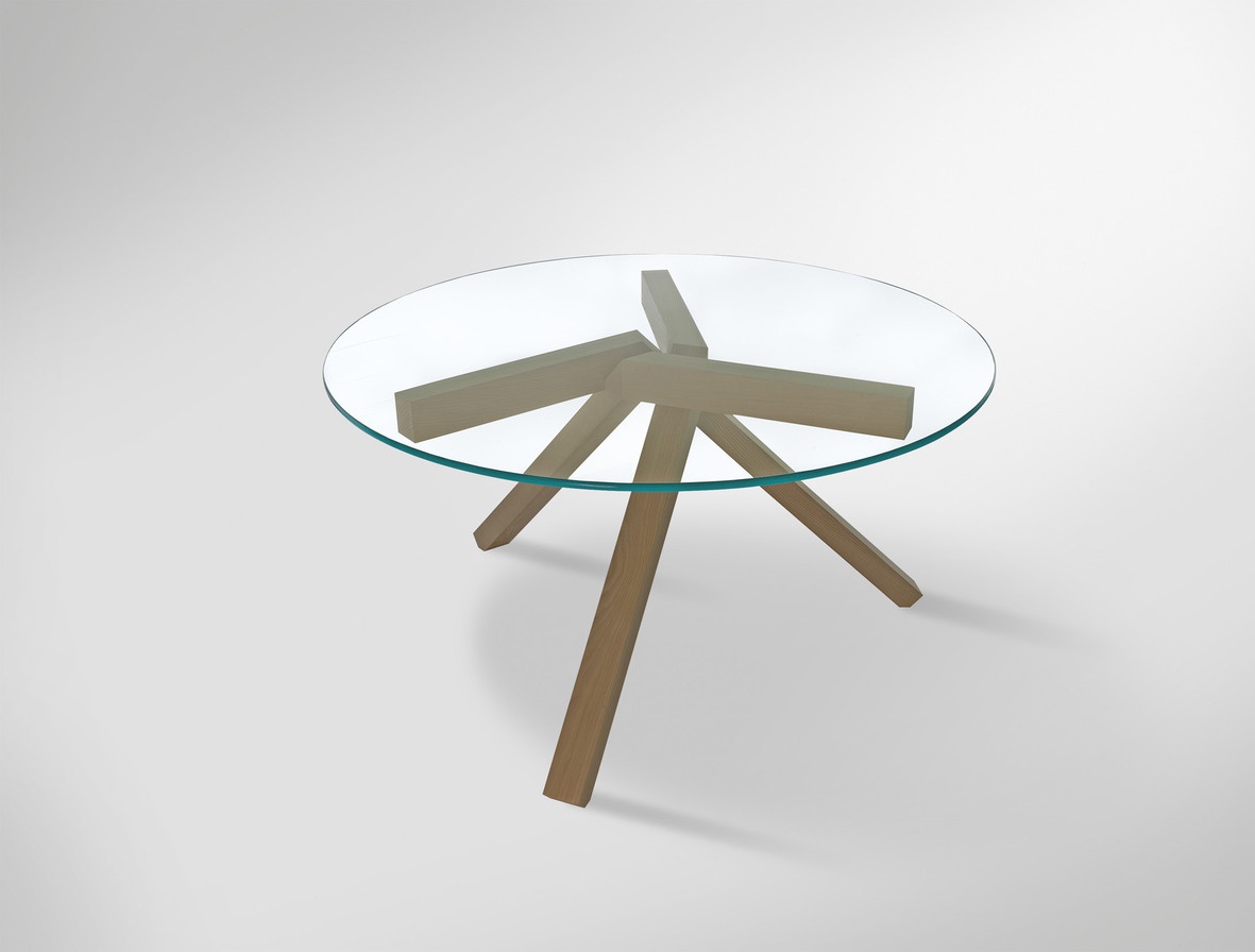 Dining table with top in tempered glass and legs made of solid wood Quiete, Arketipo