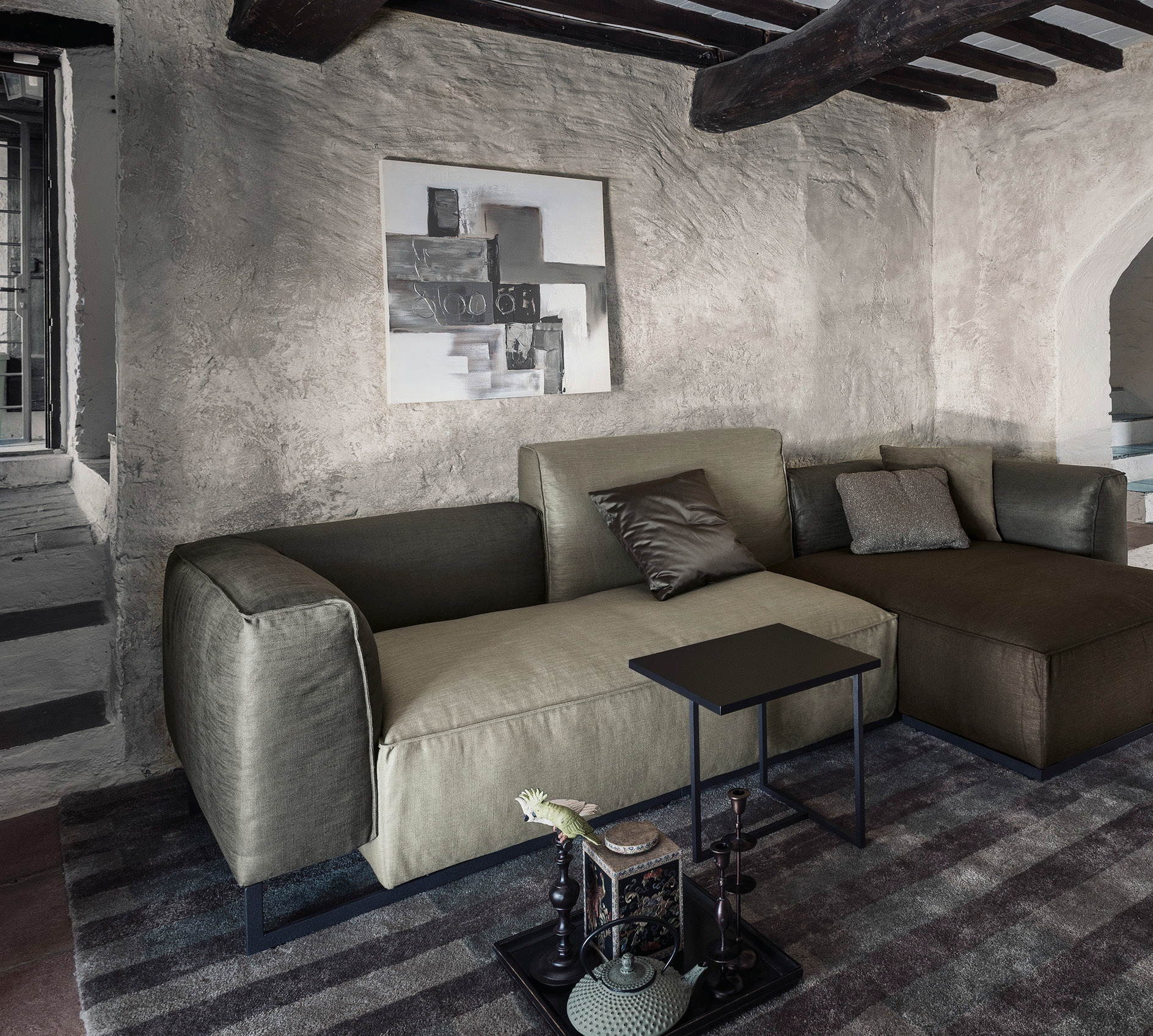 Modular sofa with frame made of metal and plywood filler made of polyurethane foam and legs made of metal Inkas, Arketipo