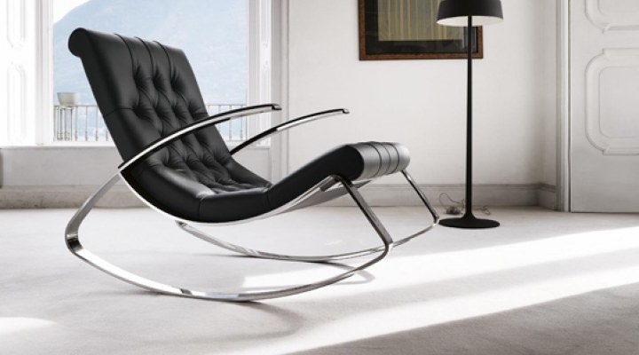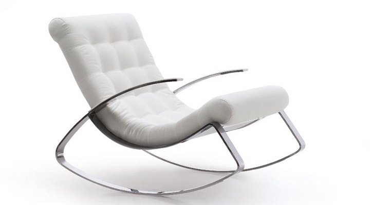 Rocking chair Kel from Italian producer Desiree. The frame is made of metal. Upholstered in leather from the company portfolio. The upholstery is embellished with stitch. The chair is designed in modern style. Armrests - metal. Colors - black or white.