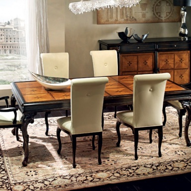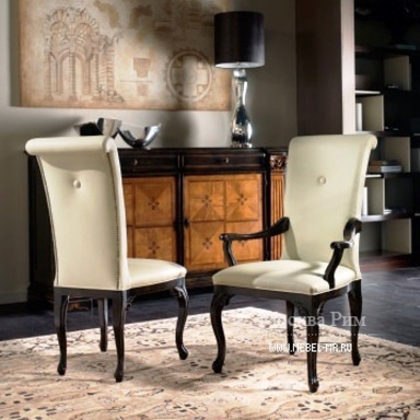 Chair Arte Brotto from the Italian manufacturer Arte Brotto. The frame is made from solid wood, upholstery - leather or textiles from a range of campaigns. The model with armrests and high back. A great choice for the interior in classic style. Colors: white, black.