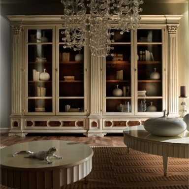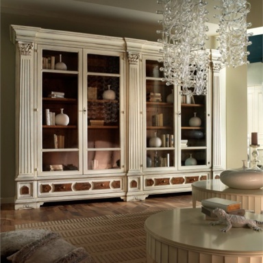 Bookcase Arte Brotto from the Italian manufacturer Arte Brotto. The frame is made from solid wood, veneer finish. Doors made of glass. The product is decorated with fretwork. The model is intended for interior in classic style. Colors: white, brown.