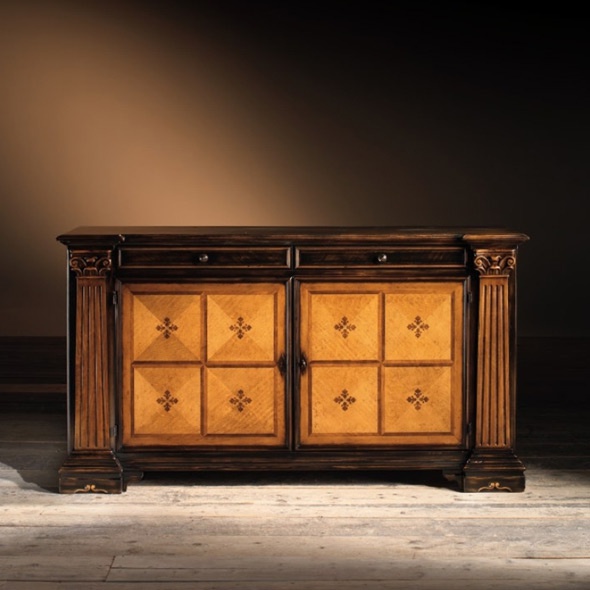 Dresser Arte Brotto from the Italian manufacturer Arte Brotto. The frame is made from solid wood. The model is decorated with inlaid - marquetry. Dresser with two drawers and hinged doors. A great choice for the living room in a classic style. Colors: natural wood color, brown.