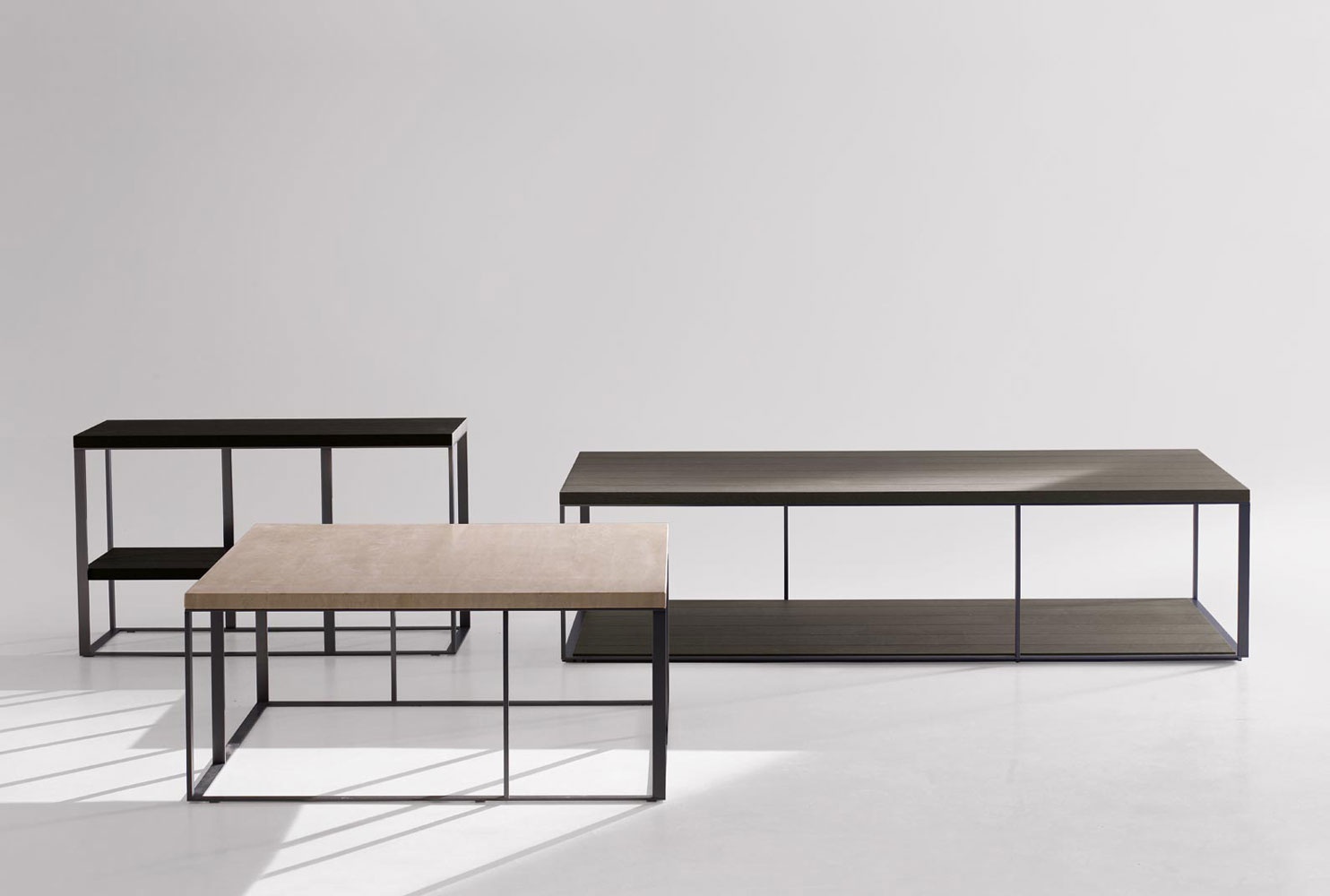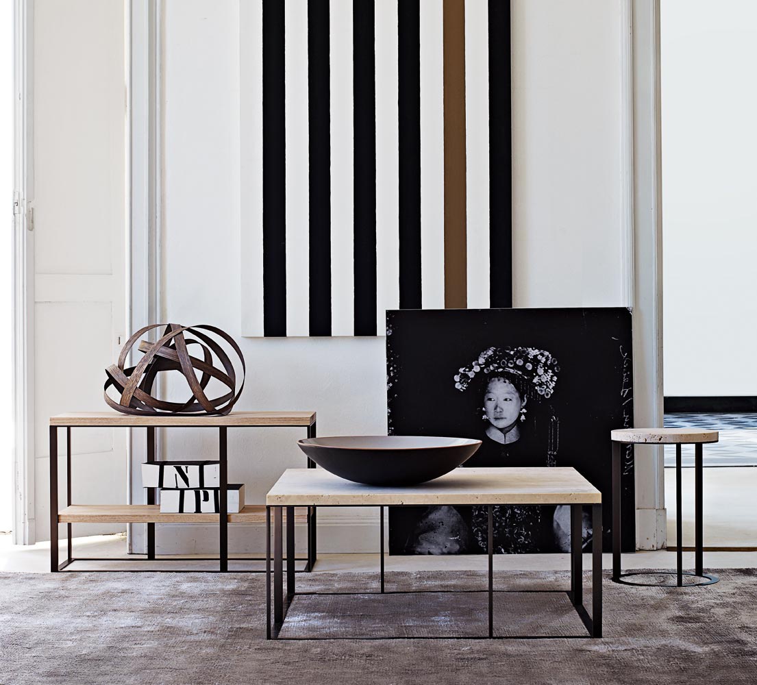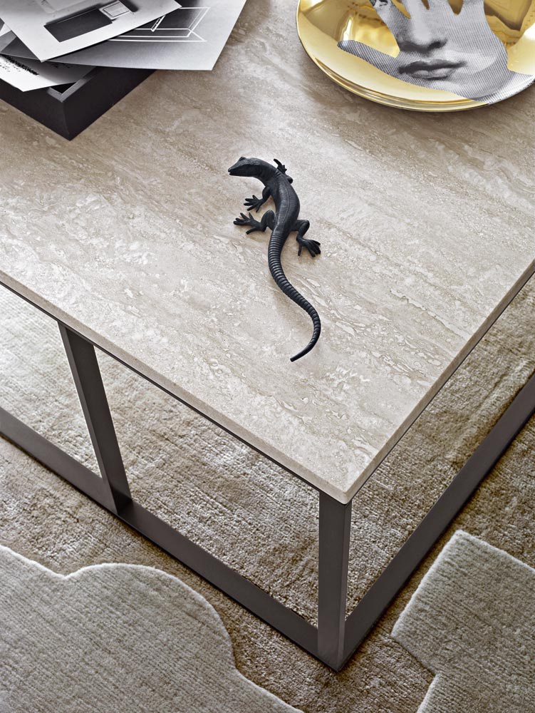 Coffee table on steel frame with marble or wooden top Lithos, B&B Italia