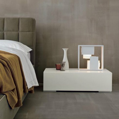 Bedside table Italian manufacturer Dall'agnese. Bedside table made of wood. Low model rectangular shape. The color of the model in white. The modern style of execution.