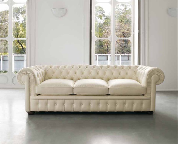 Three-seater sofa Italian manufacturer Dall'agnese. The sofa in the soft upholstery. The finishing of the sofa is made of genuine leather, stitch decor Capito. Color white from the manufacturer. A style classic.