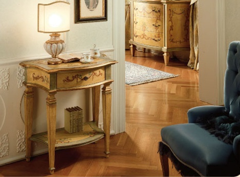 The console from the Italian manufacturer Gasperini. The frame is made from wood masiva. The model is made in classic style. Colors - beige. Fittings - metal. The model is made with a vegetative ornament.