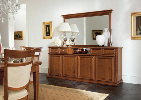 A chest of drawers from Italian manufacturer Favero. The model consists of drawers. The frame is made from solid wood. Finishing is made with glossy varnish. The offered fittings made of metal painted in Golden color. In addition, it is proposed wall mirror with wooden frame. Made chest in a classic style.