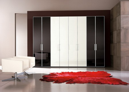 Wardrobe by Italian manufacturer Favero. The model is made in modern style. The frame is made from solid wood. Finish to be selected from the range of the company. The sash is made of plastic. Metal pens are available. Internal filling - shelves and drawers for storage. The model is elegant, modern details and durability